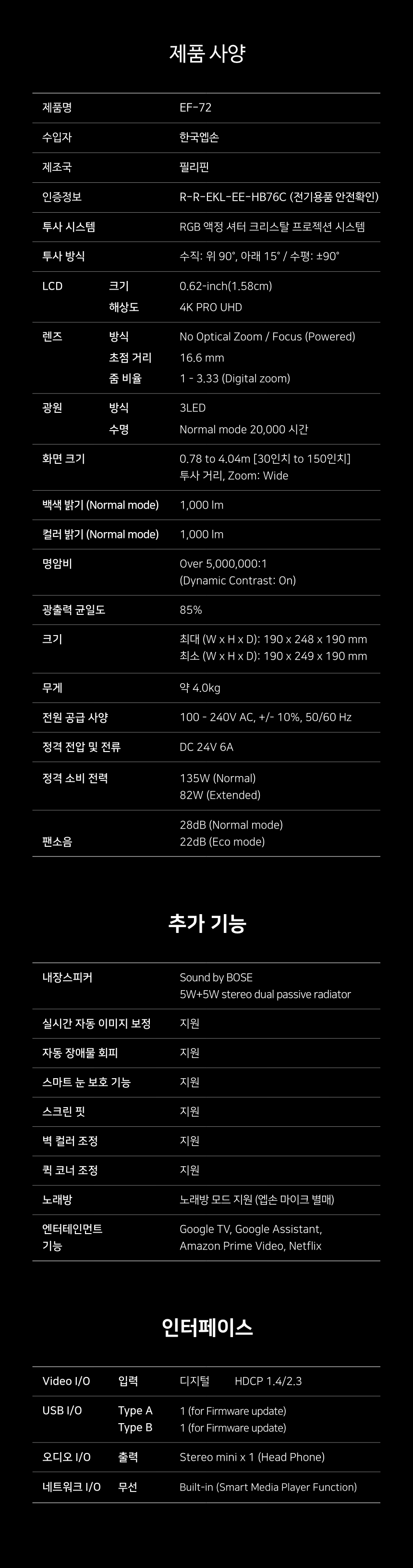 Epson EF-72 4K 투사형 프로젝터