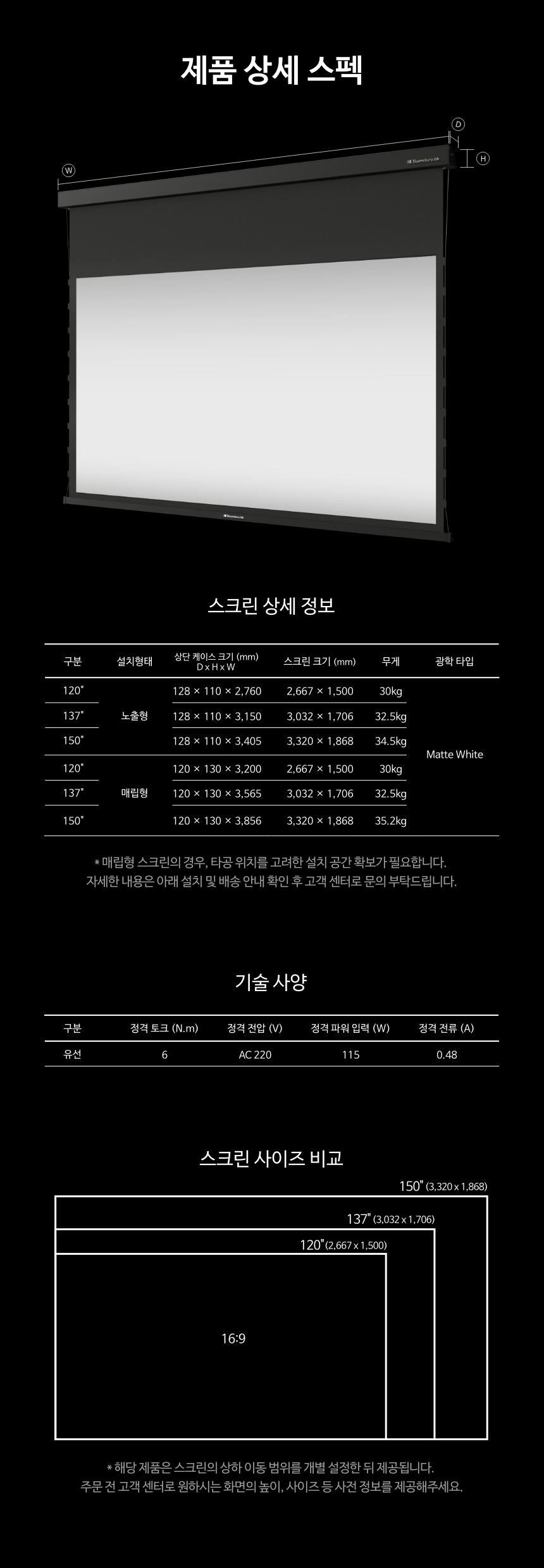 - 탭텐션 전동 스크린 150인치 + HORIZON 20