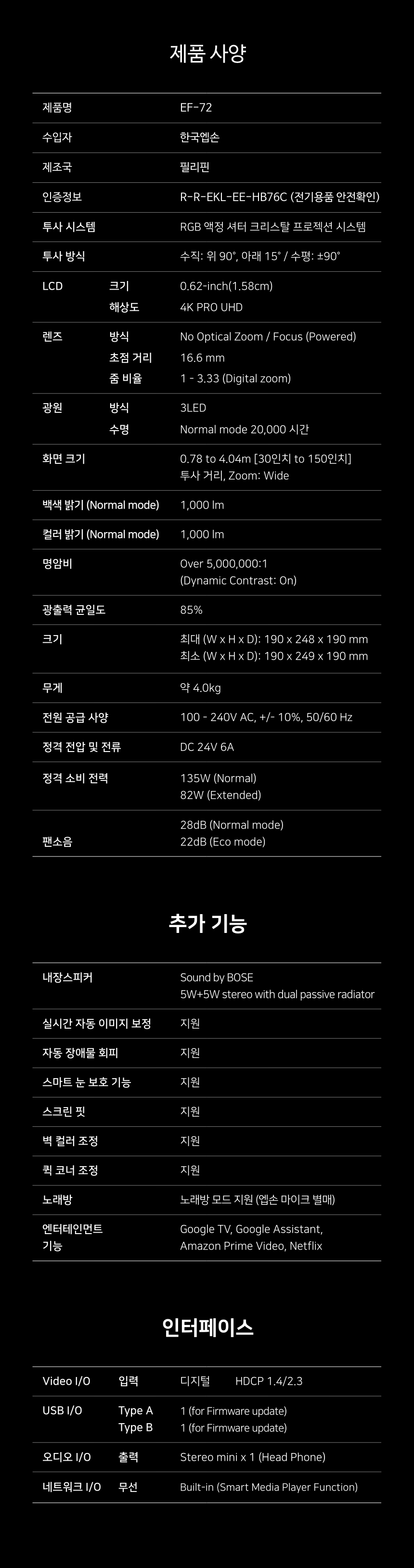 Epson EF-72 4K 투사형 프로젝터